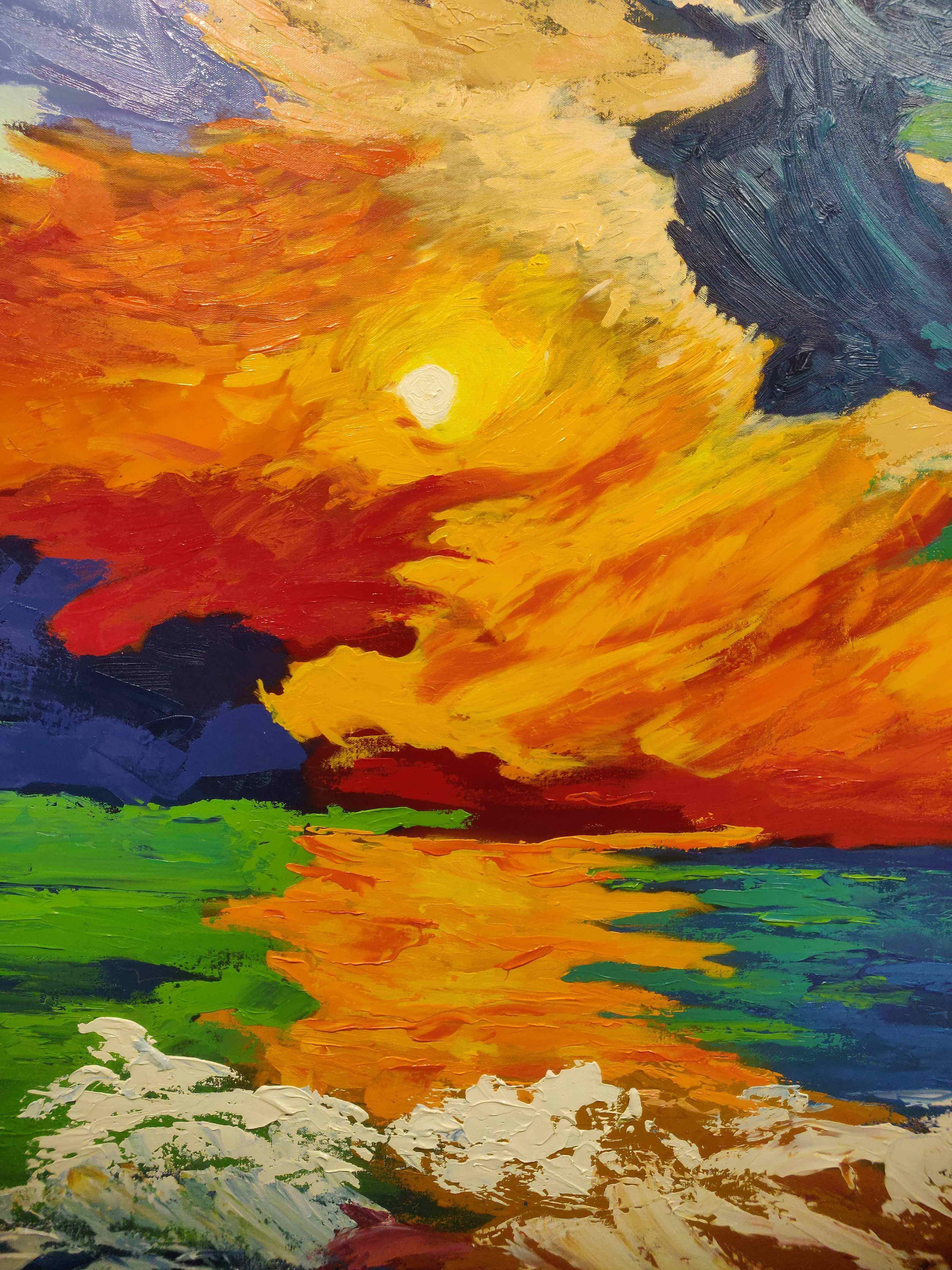layered seascape created in the Impressionist style using professional-grade oil paints. Achieving depth and fullness