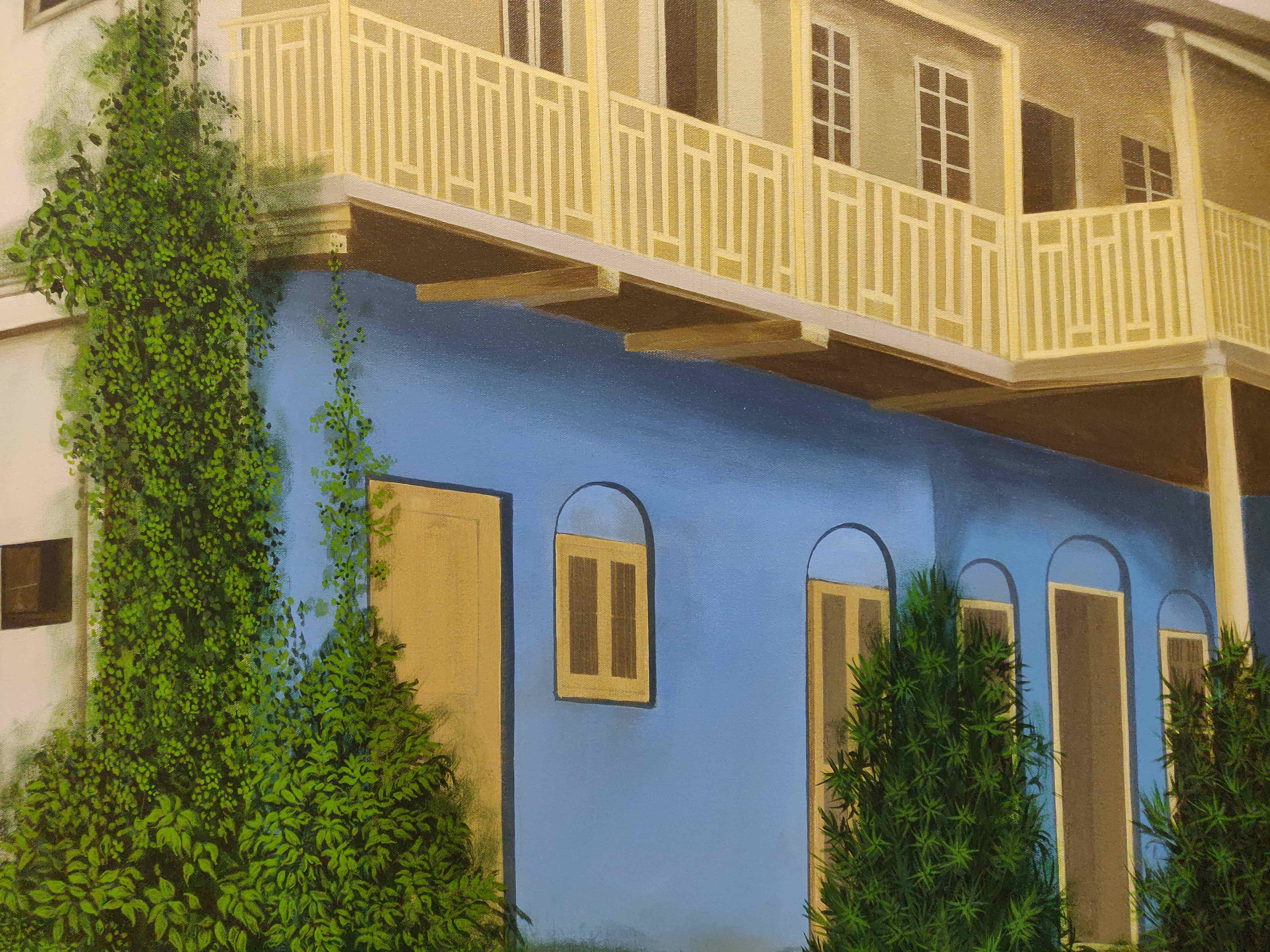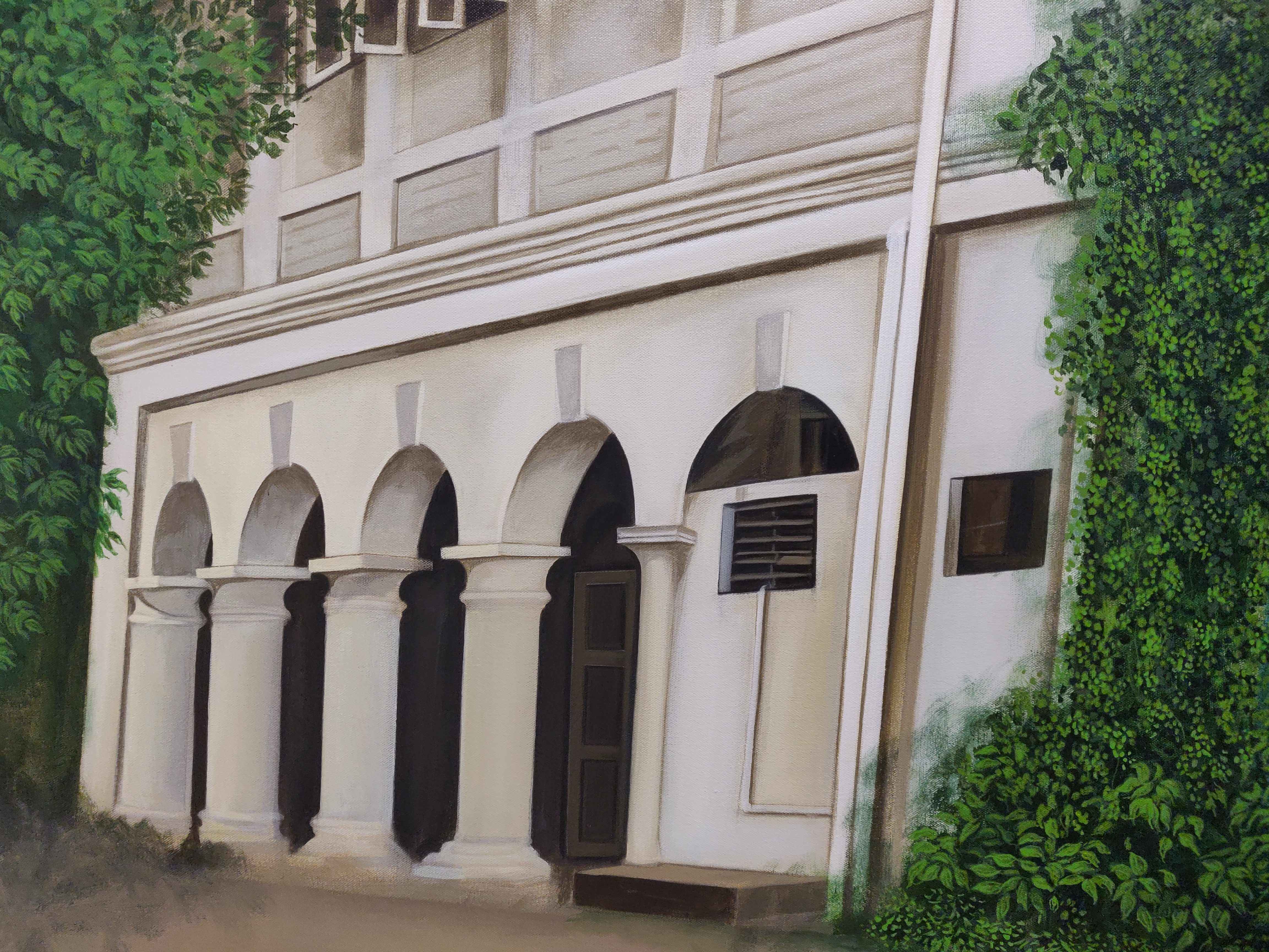 This painting is not merely a visual representation; it is a deeply personal tribute to a cherished home. Commissioned by a client after moving into a new residence, the artwork captures the essence of their old villa, preserving years of memories, stories, and emotions in a single frame. To do justice to its character, we visited the villa multiple times, studying its architecture, textures, and the surrounding landscape. The painting evolved through many layers, with careful attention to detail from the ivy-clad walls and arched windows to the play of natural light on its surfaces.